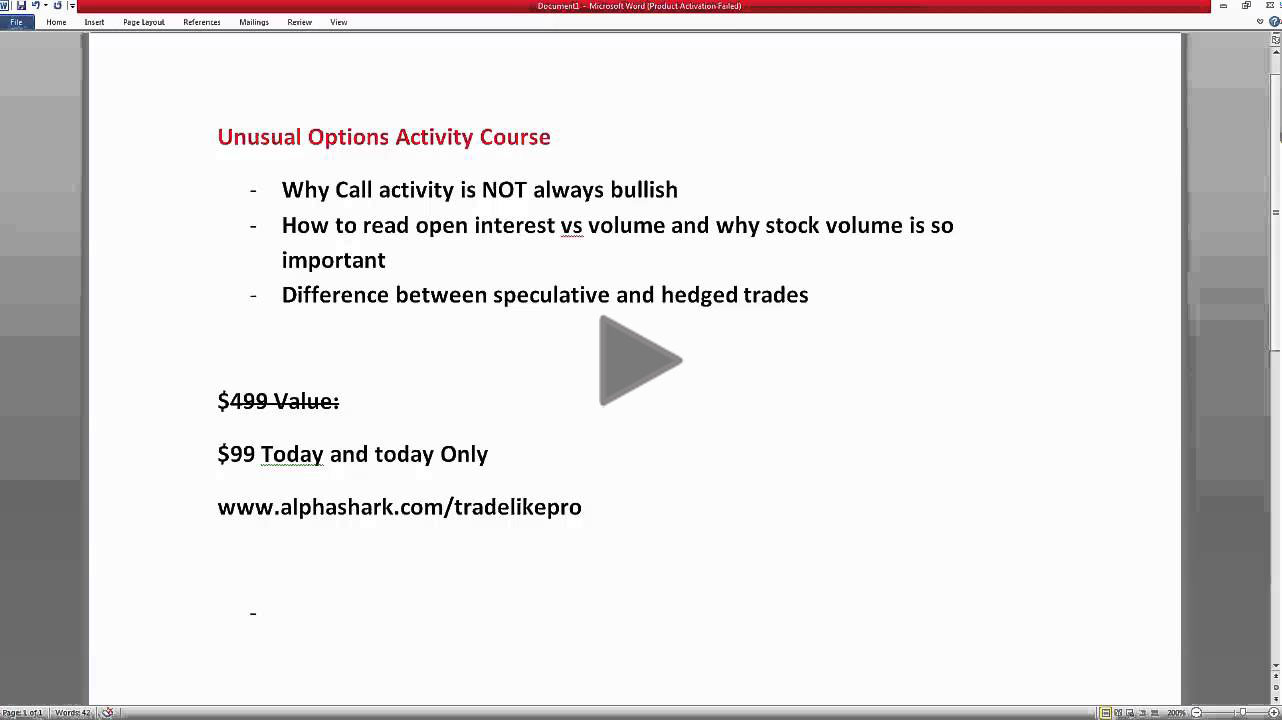 Hello You, Have you gotten used to the idea of Unusual Options Activity as the most powerful options trading method around yet? If you haven't yet realized how valuable the information options order flow provides we would like to offer you a chance to learn a little more about following unusual options activity. Click the image above to hear our founder and CEO Andrew Keene talk more about the power of unusual options activity and how you can learn to trade it like the best hedge funds in the world. Have a great day! Team AlphaShark | | |