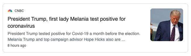 If you haven't heard yet, President Trump and the first lady have just tested positive for COVID-19…