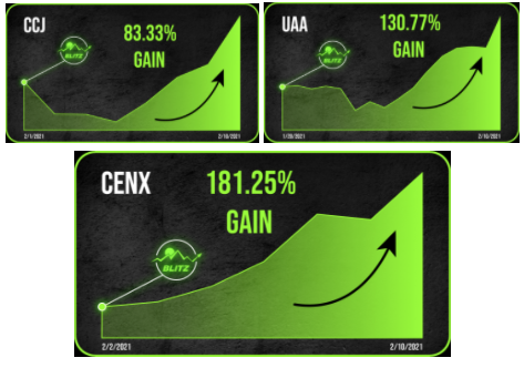 Which closed out with 83.33%, 130.77%, and 181.25% gains…