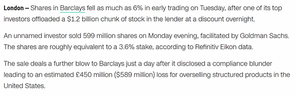 Let’s get into it. Suggested Stories: Forget the Inverted Yield Curve! Buy This Recession-Proof REIT Hackers Stole $1 Trillion in 2020 — Strong Bullish Tech Co. Fights That Trend | Tech monsters like Apple, Amazon, Microsoft and many more can no longer avoid doing business with this one company that trades for less than $5... All of them are held hostage by the CEO's brilliant business tactics. And what's even crazier ... is that his tactics reach all the way to the public. He intentionally set up his company's stock under a secret trade name... Did he fool you too? | | Barclays' $600 Million Mistake Matt: OK, you got my attention. Are you really worried about your grandma's savings though? Adam: Yes, Matt, of course. She's in her mid-90s, and she and my grandpa worked hard for every single dollar they have. In fact, I always think about my grandma’s savings any time I give advice to subscribers. While not all of the trades I recommend are appropriate for my grandmother, I keep that in the front of my mind. Matt: OK. So why is this clerical error debacle threatening to your grandma’s savings? Adam: Well, Matt, check out this section of a recent CNN Business piece:  (Click here to view a larger image.) Capital Group is one of the world's largest investment firms and parent to the American Funds brand of mutual funds that is popular among millions of U.S. investors and retirement savers. It just sold 399 million shares of Barclays! And this wasn't the only large holder of Barclays stock that dumped shares. In the same article, another unnamed holder of the stock sold 599 million shares of Barclays on Monday evening. They did it in a block trade after hours with Goldman Sachs. And it is just incredible to see large block trades like this selling out of Barclays. Matt: Selling off 900 million shares in a day? That hurts. So why are these large Wall Street investors, some of whom manage money for older Americans and retirees like your grandma, for example, bailing out of Barclays? Adam: Look, Matt, no joke. It's all because of a clerical error. Click here to read more about this silly error and how it sets up a lucrative trade. Suggested Stories: There Is No Millennial Investor Market Revolution 9.7% Dividend Crushes Treasuries and Stocks | Mysterious tech could soon "delete" diseases from your body … and make a tiny Silicon Valley company soar high. | | |  1720: Shares of South Sea Company traded publicly for the first time with permission from the British royal family. It was the beginning of the South Sea Bubble, one of the most famous bouts of market speculation in history. | | Privacy Policy The Money & Markets, P.O. Box 8378, Delray Beach, FL 33482. To ensure that you receive future issues of Money & Markets, please add info@mb.moneyandmarkets.com to your address book or whitelist within your spam settings. For customer service questions or issues, please contact us for assistance. The mailbox associated with this email address is not monitored, so please do not reply. Your feedback is very important to us so if you would like to contact us with a question or comment, please click here: https://moneyandmarkets.com/contact-us/ Legal Notice: This work is based on what we've learned as financial journalists. It may contain errors and you should not base investment decisions solely on what you read here. It's your money and your responsibility. Nothing herein should be considered personalized investment advice. Although our employees may answer general customer service questions, they are not licensed to address your particular investment situation. Our track record is based on hypothetical results and may not reflect the same results as actual trades. Likewise, past performance is no guarantee of future returns. Certain investments carry large potential rewards but also large potential risk. Don't trade in these markets with money you can't afford to lose. Money & Markets expressly forbids its writers from having a financial interest in their own securities or commodities recommendations to readers. Such recommendations may be traded, however, by other editors, Money & Markets, its affiliated entities, employees, and agents, but only after waiting 24 hours after an internet broadcast or 72 hours after a publication only circulated through the mail. (c) 2022 Money & Markets, LLC. All Rights Reserved. Protected by copyright laws of the United States and treaties. This Newsletter may only be used pursuant to the subscription agreement. Any reproduction, copying, or redistribution, (electronic or otherwise) in whole or in part, is strictly prohibited without the express written permission of Money & Markets. P.O. Box 8378, Delray Beach, FL 33482. (TEL: 800-684-8471) Remove your email from this list: Click here to Unsubscribe | | |