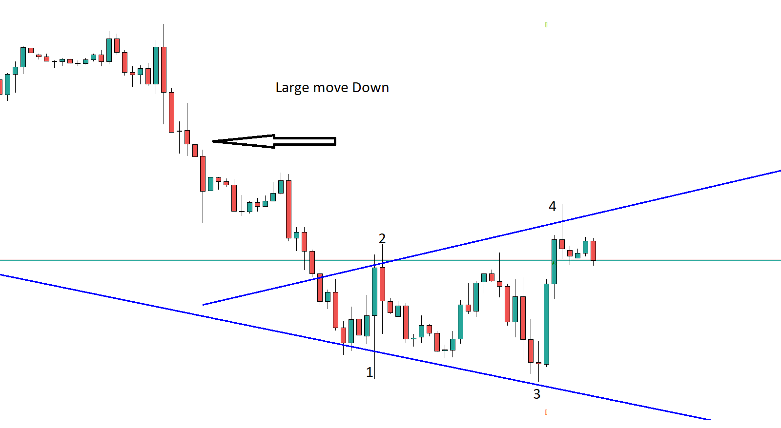 After the market makes a big move then it makes a pattern of higher highs and lower lows.