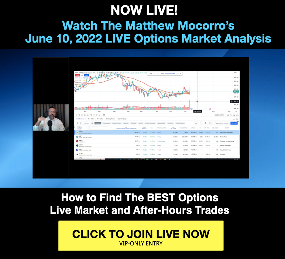 | VIP NOTIFICATION  See Pro-Trader Matthew Mocorro Lay Down For You The Most Profitable Options Trades Of The Day... Watch The Live- and After-Market Play-By-Play Actual Trades That Matthew Mocorro is Making for Maximum Profit THIS is YOUR MOMENT to GET IN and trade with Matthew and get tons of exclusive insights with his LIVE options trade analysis! This will ENLIVEN everything you do with OPTIONS in the market! Your VIP EXCLUSIVE Access: MATTHEW MOCORRO'S June 10th, 2022 Options Training | | | Concordia Financial Exchange |