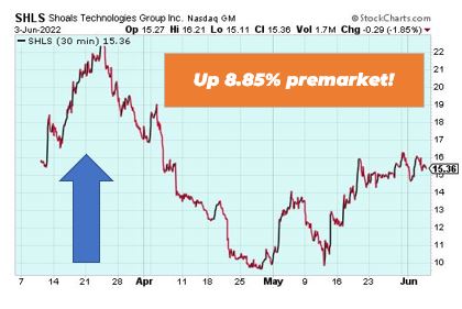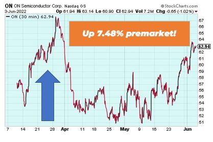 The electric power sector is expected to increase its solar capacity by 31% this month.Good morning Wake-Up Watchlisters! While you're sipping that peanut butter banana smoothie you'll see stock futures rose on Monday amid optimism surrounding Beijing's latest move to ease COVID restrictions. While news around China's potential economic activity is welcome, short-term volatility will likely persist according to Diana Mousina, a senior economist at AMP Capital. With more up and down swings likely in store, one of the best ways to win in the current markets is with a 'Win Both Ways' trade. We've had War Room members make as much as $5,000 in less than 10 minutes with this strategy! Click here to learn more. Here's a look at the top-moving stocks this morning. SunRun (Nasdaq: RUN) SunRun is up 9.04% premarket as the solar sector continues to boom. Per the latest energy report from the U.S. Energy Information Administration, the utility-scale solar generation from June to August 2022 is estimated to increase by 10 million megawatt hours compared with the same period last summer. Also, the electric power sector is expected to increase its solar capacity by 31% this month. Keep an eye on SunRun going forward. Shoals (Nasdaq: SHLS)Shoals is up 8.85% premarket as the solar equipment company is seeing higher revenue numbers. The company's revenue jumped 49% year-over-year to $68 million. US President Joe Biden also announced he will declare a 24-month tariff exemption from four Southeast Asian nations. As the demand for solar products remains strong, Shoals is also looking strong. ON Semiconductor Corp. (Nasdaq: ON) ON Semiconductors is up 7.48% premarket as analysts have rapidly increased their earnings outlook for the microchip company over the last 60 days. The Consensus Estimate Trend has climbed 21% for the upcoming quarter. While microchip companies like ON struggled early in 2022 due to supply chain issues, demand remains high as its microchips continue to provide functionality to mobile devices, vehicles and computers. Keep an eye on ON going forward. VICI Properties (NYSE: VICI) VICI Properties is up 8.95% premarket as investors seek a safe haven in dividend stocks. VICI Properties is offering a dividend yield of 4%. The real estate company also just declared an annualized rate of $1.44, that gives the dividend a yield of 4.9%. With more than 450 restaurants and 43 gaming locales, it's worth keeping an eye on VICI Properties as more people start traveling again this summer. Do Your Stocks Meet These 5 Success Factors? As the fed stops printing unlimited money and interest rates rise, there will be a new set of criteria for successful stocks going forward. Our Head Trading Fundamental Karim Rahemtulla breaks down the 5 most important factors for success in the markets going forward. Click here to read more. Those are the top market movers today. Happy trading! The Wake-Up Watchlist Research Team |