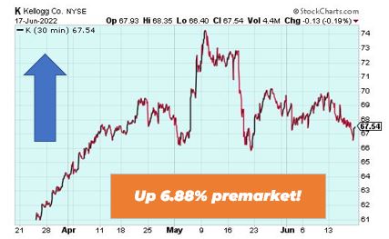 In 2022, the company's order book remains sold and is in sync with its continued aim of share gains in both robotic hips and knees.Attention Investors! Get ready... For the first time ever, Bryan and Karim are holding an Emergency Bear Market Inflation Summit on Thursday, June 23, at 2:30 p.m. ET. Join them as they talk about the challenges of the current market... and outline exactly how to survive the chaos. Plus... they'll be taking your questions LIVE. You don't need to sign up. For now, just add the event your calendar. We'll send you a Zoom link 10 minutes before we go live on Thursday. Note: Our Zoom room is limited to 3,000 participants. Spots are first come, first served. Again, no need to sign up. Just add the event to your calendar. Good morning Wake-Up Watchlisters! While you're sipping that $0.99 gas station coffee with a stale cinnabun you'll see stock futures turned around Monday following a drop that erased nearly $2 trillion from the S&P 500 last week. The latest boost comes off the heels of a statement from US President Joe Biden, saying a recession 'isn't inevitable' despite a rough outlook. Here's a look at the top-moving stocks this morning. Stryker Corp. (NYSE: SYK)Stryker is up 7.47% premarket as the medical technology company continues to see strong demand for its medical robots. In 2022, the company's order book remains solid and is in sync with its continued aim of share gains in both robotic hips and knees. Keep an eye on Stryker going forward. Xerox Holdings Corporation (Nasdaq: XRX)Xerox Holdings is up 6.14% premarket after the company affirmed its dividend of $0.25. The company will pay the dividend on Aug. 1, 2022 and the yield will be 6.3%. Even though Xerox Holdings isn't generating a profit as of now, it's currently generating healthy free cash flows that easily cover the dividend. Xerox is looking strong. TuSimple Holdings (Nasdaq: TSP)TuSimple Holdings is up 6.63% premarket after the company showed solid progress across its technology development. The self-driving technology company is expected to post revenues of $4.04 million, up 173% from the year-ago quarter. Keep an eye on TuSimple Holdings going forward. Kellogg Co. (NYSE: K)Kellogg Co. is up 6.88% premarket after the company announced plans to separate its North American cereal and plant-based foods business via tax-free spinoffs. The three companies will include 'Global Snacking Co.,' 'North America Cereal Co.,' and 'Plant Co.' Kellogg's CEO Steve Cahillane said the businesses all have significant standalone potential. Keep an eye on Kellogg going forward. How to Recognize Insider TradingWith so much shifting in the markets, it often pays to follow the money. Our Head Trading Fundamental Karim Rahemtulla shows you how to do that in this article. Click here to learn more. Those are the top market movers today. Happy trading! The Wake-Up Watchlist Research Team |