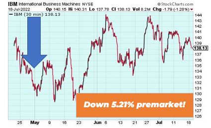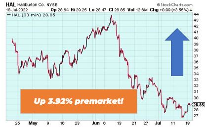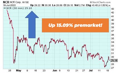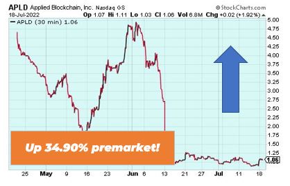 Good morning Wake-Up Watchlisters! While you're breaking out the paper filters for your coffee you'll see stock futures rose higher Tuesday. The dollar extended its recent decline and treasury yields held steady. This week of corporate earnings has brought about mixed messages from some of the world's biggest companies (more on that below). Here's a look at the top-moving stocks this morning. Applied Blockchain (Nasdaq: APLD)Applied Blockchain is up 34.90% premarket after the company entered a five-year hosting contract with Marathon Digital Holdings, Inc. (Nasdaq: MARA) for 200-Megawatts of Bitcoin mining capacity. The company will provide hosting services for Marathon's Bitcoin miners. While blockchain appears to be at the forefront of innovation, there's another sector that could skyrocket in the coming years – the electric vehicle sector. Our friend Andy Snyder wants you to know about a technology that could be a staple of all electric cars going forward – and right now you get in on it for less than $25. Click here to unlock this EV stock. NCR Corp. (NYSE: NCR) NCR is up 15.09% premarket as the company is in exclusive talks to be sold to private-equity firm Veritas Capital, according to people familiar with the matter. This would be one of the biggest leveraged buyouts as the environment for such deals has become more perilous. A deal could be weeks away and is far from guaranteed. Haliburton Company (NYSE: HAL)Haliburton is up 3.92% premarket as the oil sector rises on news that Saudi Arabia did not plan to boost its oil output beyond OPEC-assigned quotas. This will likely lead to tightened oil and gas supplies. Also, Haliburton reported strong second-quarter earnings this morning, reporting adjusted net income of $442 million, or $0.49 per diluted share. Energy stocks have been the major winners in 2022, and we're showing War Room members how to profit. We had a total return of 115.8% in 12 days during the Russia/Ukraine conflict - and right now we're guaranteeing members receive 322 winning trades in their first 12 months of membership. Click here to unlock those trades. IBM (NYSE: IBM)IBM is down 5.21% premarket despite beating earnings. Futurm Principal Research Analyst Daniel Newman said he feels more positive about IBM after its latest earnings report. Newman says IBM is showing strength in enterprise technology, including automation, A.I. and cloud tech. Overall, Newman believes IBM is a value stock that's in a good position to weather the economic storm. With markets down overall in 2022, value stocks that can withstand economic headwinds are crucial to pay attention to. That's why we're pounding the table on what we're calling 'The Last Great Value Stock.' Right now it's trading for around $2 – but there's an upcoming announcement in August that could send it soaring. Click here to unlock this stock. Those are the top market movers today. Happy trading! The Wake-Up Watchlist Research Team |