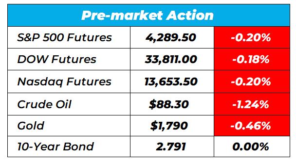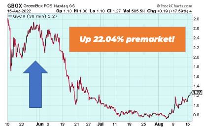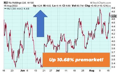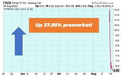| Good morning Wake-Up Watchlisters! While you're sipping morning coffee you'll see US stock futures dipped on Tuesday. Investors are being cautious with more signs of a sharp economic slowdown on the horizon. The drop comes despite the Federal Reserve seeking to tighten up monetary policy further. With the markets remaining volatile, there's one safe-haven play we want you to know about. This is a timeless strategy that's been proven to help investors weather economic storms. Click here to learn more about it. Forza X1 (NYSE: FRZA) Forza is up 37.95% premarket after the company described as 'the Tesla of boats' enjoyed a boost from its IPO on Friday. The company is using a direct-to-consumer model to be a more affordable, sustainable option for recreational boaters. Its interesting the stock is up because the global IPO market has slumped nearly 50%, a lot of that due to political tensions and other macroeconomic issues. Forza's rise is another sign the electric vehicle sector is not going away, in fact it's just getting started. Our friend Andy Snyder recently talked about a company that's been dubbed 'The next Tesla' and right now it's trading for under $25. Click here to unlock this EV stock. GreenBox (Nasdaq: GBOX) Greenbox is up 22.04% premarket after the fintech company grew revenue by 42% in the second quarter. It also recorded processing volume of over $1 billion, about 50% ahead of internal projections. To top it off, it saw significant momentum in the quarter with over $184 million in business volume. Nu Holdings (NYSE: NU) Nu Holdings is up 10.68% premarket after reporting its second quarter financial results. Nu is one of the largest digital banking platforms in the world, and last quarter it added an additional 5.7 million customers. The average revenue per customer expanded by $7.8, growing by 105% on a FX neutral basis. As e-commerce businesses become even more common, there's a $4 stock our friend Alexander Green says could be the cornerstone of your retirement portfolio. This company has already inked deals with Cisco, Dell, Microsoft, Intel, Amazon and Apple. And it's expected to receive $35 billiom from these partnerships alone. Click here to learn more about this $4 'perfect stock.' GoHealth (Nasdaq: GOCO) GoHealth is down 9.77% premarket after seeing a 19% decrease in second quarter net revenue. The health insurance company also posted a net loss of $113.8 million compared to a net loss of $39.2 million in the prior year period. Those are the top market movers today. Happy trading! The Wake-Up Watchlist Research Team |