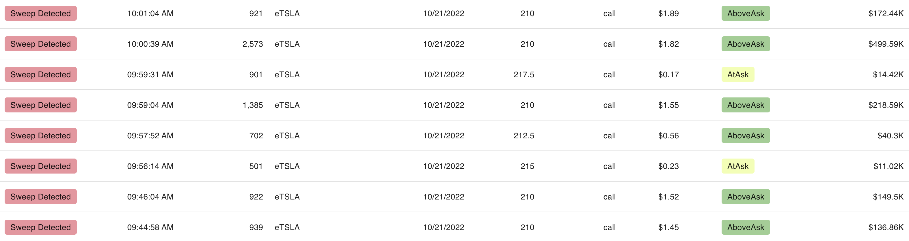 And I noticed big call sweeps, above ask, on the $210 TSLA expiring today. One sweep alone was a half a million above ask.