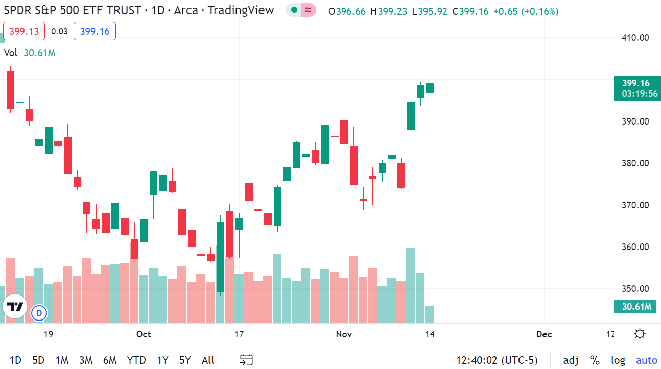 Here's an S & P 500 ETF Trust (NYSE: SPY) chart …