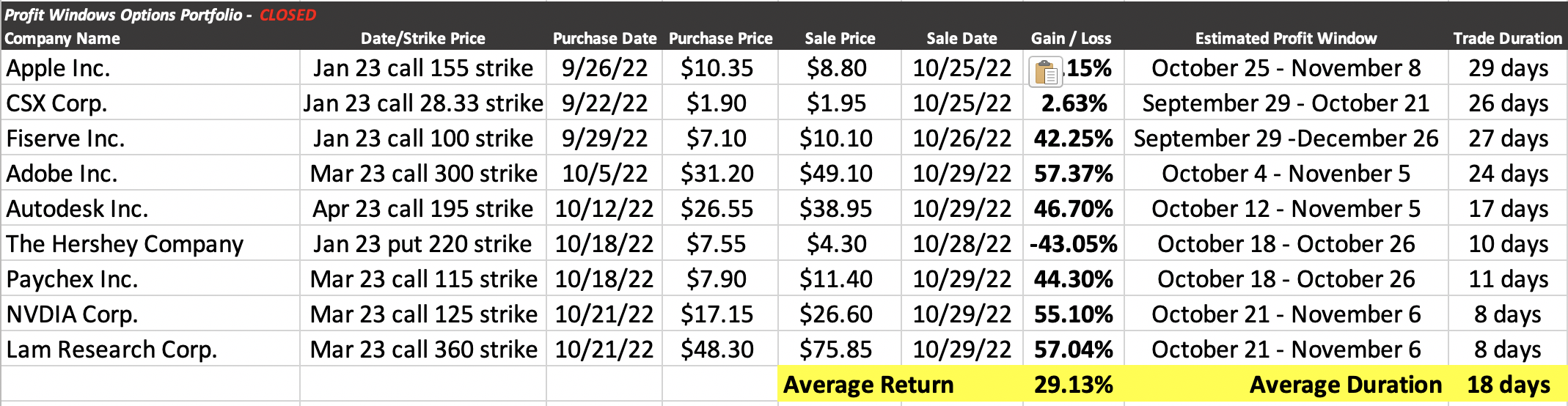 That’s 7 winners out of 9 trades in the runup to the midterms – a win rate you’d expect from selling options, not buying them!