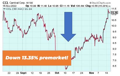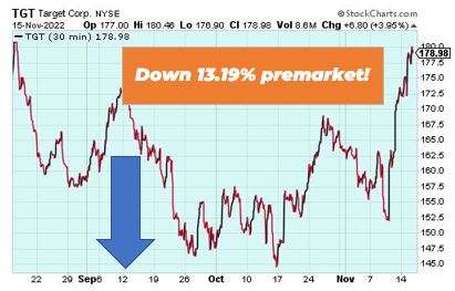 | Good morning Wake-Up Watchlisters! While you're sipping coffee you'll see stock futures dipped on Wednesday. 'Organized retail crime' played a role as a major retailer reported a big earnings miss (more on that below). The Commerce Department is set to release its latest retail sales report at 8:30 a.m. If numbers are high, it could hurt the market's uptrend as the Federal Reserve Policymakers will consider continuing aggressive rate hikes. When the markets are down, following where insiders put their money is one of the most effective strategies for making profits. That's why our Head Fundamental Tactician Karim Rahemtulla is revealing his Insider Code webinar on Thursday, November 17th at 2 p.m. EST. In this webinar he'll reveal how he made a 43% return in 2022 and how you can take advantage of shadowy (yet powerful) trades made by company insiders. You won't want to miss this. Click here to get on the guest list. Here's a look at the top-moving stocks this morning. Target (NYSE: TGT) Target is down 13.19% premarket after it was revealed theft accounted for $400 million in losses in 2022 so far. This inventory shrinkage isn't just affecting Target, but also other big name retailers like Best Buy and Rite-Aid. If major retail stocks like target continue to struggle and drag down the market, it's important to consider alternative investments. Our Head Fundamental Tactician Karim Rahemtulla is showing readers why they should move their cash into this $3 alternative asset BEFORE December 2, 2022. Click here to unlock this $3 recession-proof play. Burning Rock Biotech Limited (Nasdaq: BNR) Burning Rock is up 10.53% premarket after reporting results for the third quarter. In-hospital strategy was a key driver, accounting for 24% growth year-over-year. MRD volumes also ramped up, with 700 tests completed in the third quarter, more than doubling the volumes in the second quarter. |