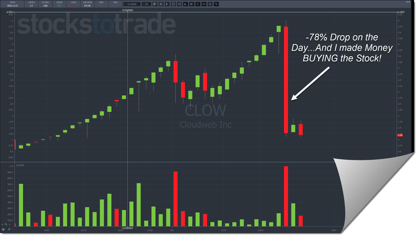 Last week, I used a little known nuance to dip buy Cloudweb Inc. (OTC: CLOW) for a nice $834 profit… (My starting stakes were $6,740)