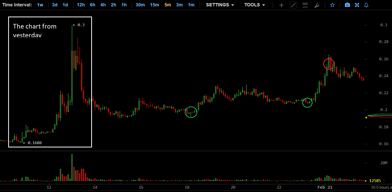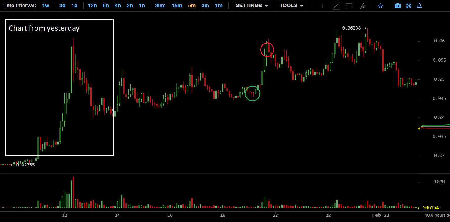 Notice the consolidation sideways. If the price were to fall below that consolidation level, instead of bouncing, the strategy is to sell for a small loss.