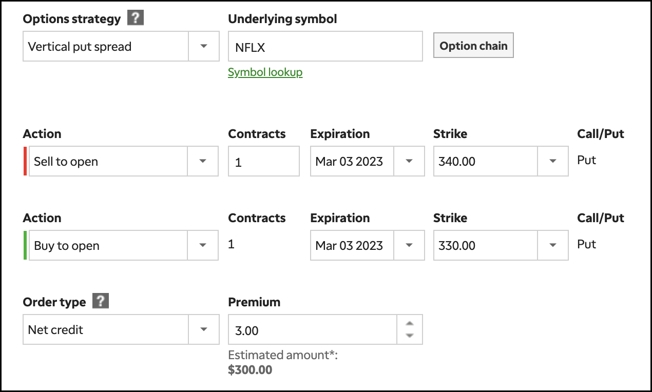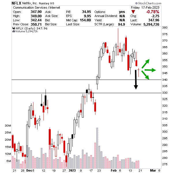 NFLX can head lower, but as long as it's above $340, the seller wins NFLX trades sideways, the seller wins And of course the seller wins if NFLX heads up
