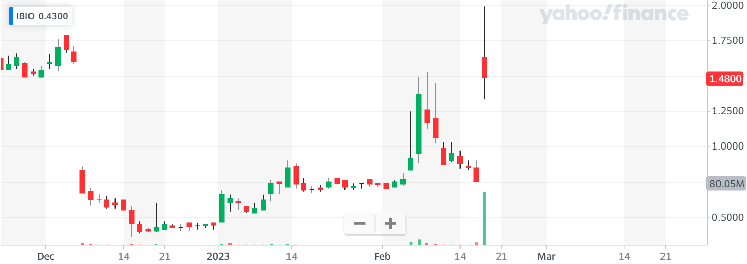 Technically the stock closed red on the day. But there was a decent amount of intraday volatility and it still closed +90% after bouncing off support from early February.