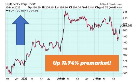 | Good morning Wake-up Watchlisters! While you're sipping coffee you'll see stock futures were steady Friday after a tumultuous week for global markets. Contracts on the S&P 500 fluctuated after the index rallied 1.8% yesterday as larger banks threw a lifeline to First Republic Bank (more on that below). Overall, US banks borrowed a combined $164.8 billion from two Federal Reserve backstop facilities in the most recent week. While this bank crisis is settling, there could still be aftershock swings in the near future. While investors were panicking over several banks collapsing on Wall Street this week, we were making winning trades in The War Room. We closed out a 38% winner on SCHW and also closed a small 1.66% winner on JPM. If you want to see how we avoid the negative noise and make winning trades in volatile markets, click here to join The War Room. Here's a look at the top-moving stocks this morning. FedEx Corporation (NYSE: FDX) FedEx is up 11.74% premarket after hiking its full-year earnings forecast despite coming up short in revenue vs. Wall Street estimates. The company reiterated its expecting to make more than $4 billion in cost reductions by the end of fiscal year 2025. Subramanian said the company saved $1.2 billion on total enterprise costs year-over-year. Earnings day can often serve as a catalyst for a stock's direction. But there's an earlier sign also proven to be a major clue – insider buying (the legal kind). Our Head Fundamental Tactician Karim Rahemtulla uses state-of-the-art technology to discover where the big names are investing their money. Click here to learn more about The Insider Matrix. First Republic Bank (NYSE: FRC) First Republic Bank is down 8.67% premarket despite the recent $30 billion rescue package from the country's biggest lenders. The main concern was the bank's balance sheet, as First Republic said in a Securities and Exchange Commission filing that its cash position was pegged at around $34 billion. This was prior to the promise of an additional $30 billion from a consortium of 11 banks lead by JPMorgan Chase CEO Jamie Dimon. First Republic Bank had also borrowed $119 billion over the past week from the Fed's new lending backstop program and the Federal Home Loan Bank. Sarepta Therapeutics (Nasdaq: SRPT) Sarepta is down 19.22% premarket after the Food and Drug Administration contradicted the biotech company. The FDA said it required an advisory committee meeting for its experimental Duchenne muscular dystrophy drug. Sarepta said the FDA did not plan on requiring a meeting, and shares soared 23.5% that day. Medical stocks have the potential to provide massive gains – if you know where to look. Our friend Alexander Green has a proven track record for predicting major medical revolutions. And right now he wants readers to know about this medical device company. He believes this medical breakthrough could be the greatest early investing opportunity of the century – and its stock is well under $10. Click here to discover this under $10 stock. Sector watch: NVIDIA Corp. (Nasdaq: NVDA) Nvidia Corp. is up 2.11% premarket after an interesting day for microchip stocks. Advanced Micro Devices and Intel were also up in after-hours trading on Thursday. According to The Motley Fool, right now the semiconductor sector is seeing three bullish cases. One is the bottom of the PC market hitting at an earlier rate. Second, the utilization rate of semiconductors is expected to recover as early as the second quarter 2023. Lastly, you have the artificial intelligence war, as you see new companies in AI like Google, Amazon and Microsoft fueling the data center needs for semiconductor companies like Nvidia. There's another major (and downright frightening) development in the semiconductor industry we think you should know about. There's reason to believe China is planning to dominate the microchip industry as it sets its sights on Taiwan. Click here to see how a US company plans to stop them and how its stock could surge 525% in the near future. Those are the biggest stock movers for today. Happy trading! The Wake-Up Watchlist Research Team |
