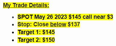 And just look at what those SPOT May 26 2023 $145 calls did through Thursday alone!
