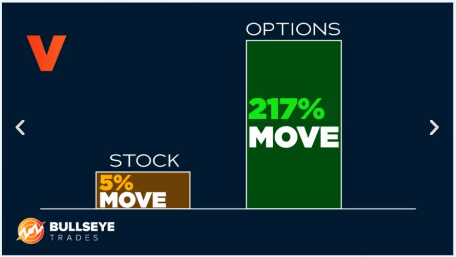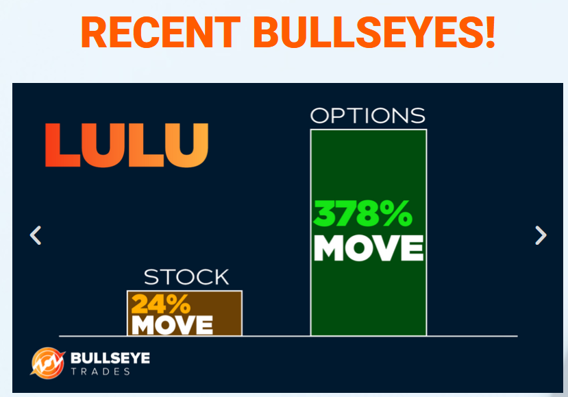 And teaching retail traders just like you how to use the right options strategies, under the right market conditions, to takes advantage option leverage that leads to powerful advances vs. the underlying stock like these recent Bullseye Trades ideas: