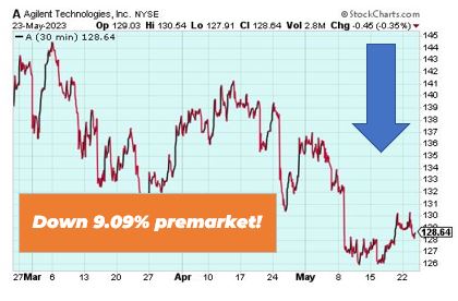 | Good morning Wake-up Watchlisters! While you're sipping coffee you'll see stock futures dipped again on Wednesday, continuing a downward trend on Wall Street after significant losses on Tuesday, with both the S&P 500 and Nasdaq 100 declining over 1%. Progress in US debt negotiations was limited, raising concerns about a potential default in the world's largest economy. Stocks are currently facing multiple challenges, including apprehension regarding the US debt ceiling, China's economic recovery, and worries about persistent inflation that may lead to prolonged higher interest rates. With the markets down, it's crucial to focus on value stocks that have a chance to go up and withstand headwinds. Right now our Head Fundamental Tactician Karim Rahemtulla is pounding the table on "The Last Great Value Stock." It's currently trading at under $2, and it recently got a huge upgrade from Jefferies analyst Chloe Lemarie to over 20% the current price. To top it off, its gains are already 100% above where they were last September. Click here to unlock "The Last Great Value Stock." Here's a look at the top-moving stocks this morning. Palo Alto Networks (Nasdaq: PANW) Palo Alto Networks is up 4.88% premarket after the security software maker reported quarterly earnings of $1.10 per share, surpassing the Zacks Consensus Estimate of $0.92 per share and showing significant growth compared to the previous year's earnings of $0.60 per share. This represents an earnings surprise of 19.57%. In the previous quarter, the company exceeded expectations by delivering earnings of $1.05 per share compared to the estimated $0.78 per share, resulting in a surprise of 34.62%. In The War Room, our Lead Trading Tactician Bryan Bottarelli noticed PANW had rallied 13%, 11% and 11% over its last three earnings reports. So he got positioned on the stock yesterday and closed for a winning trade in less than 1 trading day. Click here to learn more about how overnight trading works. Agilent Technologies (NYSE: A) Agilent Technologies is down 9.09% premarket after the scientific instrument maker reported quarterly earnings of $1.27 per share, meeting the Zacks Consensus Estimate and showing a slight increase compared to the previous year's earnings of $1.13 per share. In the previous quarter, the company exceeded expectations by delivering earnings of $1.37 per share compared to the estimated $1.31 per share, resulting in a surprise of 4.58%. While several stocks are down right now, it's vital to adjust and focus on a smaller group of stocks that actually have a chance of doing well. Our Lead Technical Tactician Nate Bear mentioned one of those stocks in yesterday's Trade of the Day. Click here to see how you could trade alongside Nate as part of his mission to turn a $37,000 into $1 million in verified trading profits. |