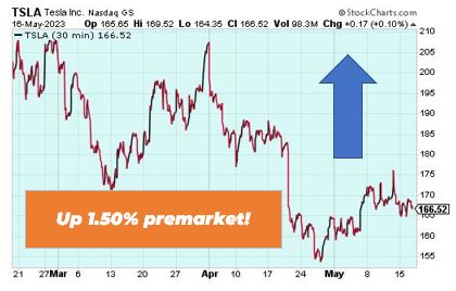| Good morning Wake-up Watchlisters! While you're sipping coffee you'll see stock futures rose on Wednesday. Traders remained hopeful about resolving the deadlock on raising the debt ceiling through talks in Washington. The looming June deadline for a potential historic default is causing anxiety among investors, leading to increased yields across the US curve, including a 30-year note rate of approximately 3.9%, the highest since the regional bank turmoil in early March. It's no secret the markets have been choppy as of late, but there are always unforseen opportunities for potential profit. Right now our Head Trading Tactician Bryan Bottarelli is telling readers about "The Next Major American Index." This index has been kept hidden by Wall Street for more than 30 years, and a recent Fed report showed it generated +1,700% returns in that timespan. Click here to discover what Bryan is calling the "Secret Profit Window." Here's a look at the top-moving stocks this morning. Wix.com Ltd. (Nasdaq: WIX) Wix.com is up 6.56% premarket following a significant turnaround in its first-quarter financial results, reporting a net profit due to substantial growth in subscription revenue. Excluding one-time items, the Israeli company earned 91 cents per share, a notable improvement compared to the loss of 72 cents per share in the previous year. The company's revenue also saw a 10% increase, reaching $374.1 million, surpassing analysts' expectations. Wix projects its second-quarter revenue to be between $380 million and $385 million, demonstrating a potential annual growth of up to 12%. Yesterday we closed a winning trade on an overnight strangle on WIX in The War Room. Click here to unlock that trade and start using this overnight strategy for potential gains while you sleep. Western Alliance Bancorp. (NYSE: WAL) Western Alliance Bancorp is up 9.05% premarket after it announced that its deposits had grown by over $2 billion since the end of the previous quarter. This news alleviated concerns regarding the well-being of regional lenders in the US. Western Alliance's stock rose by 8.5% in premarket trading, while PacWest Bancorp, another regional lending peer, gained 9%, and Zions Bancorp increased by 1.9%. |