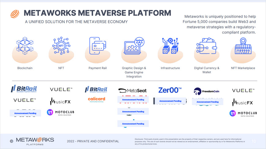 10X Your Wealth, | Sources: 1.https://metaworksplatforms.io/ 2.https://metaworksplatforms.io/music-fx/ 3.https://metaworksplatforms.io/vuele/ 4.https://metaworksplatforms.io/motoclub/ 5.https://metaworksplatforms.io/bitrail/ 6.https://metaworksplatforms.io/freedomcoin/ 7.https://metaworksplatforms.io/canadian-securities-exchange/ 8.https://metaworksplatforms.io/kodakone-ryde/ 9.https://metaworksplatforms.io/wax-and-topps/ 10.https://metaworksplatforms.io/investors/deck/09-13-2022/MetaWorks-Sept-2022.pdf |