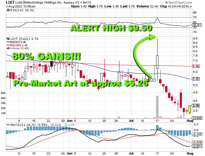 ATTENTION: New Premium Alert Coming Today 8/1 @ 4:00 PM EST Tremendous Upside Potential. Do NOT Miss This... Hi, Kevin Vander here... I'm focused on delivering you another shot at a huge potential winner, with tremendous upside potential. I will be releasing my New Breakout Alert today Tuesday 8/1, at 4PM EST... This Newest Breakout Alert Requires Your Full Attention! If you missed some of my recent big alerts, I strongly suggest you get ready for our next alert... Because you don't want to miss another winner with tremendous upside potential! We are coming off some big winners! In just the past month, 10XProTrader members witnessed not just a few, but "Multiple Breakout Gainers." These alerts below are the reason why 10XProTrader is rated the #1 small-cap newsletter in North America, check it out! I alerted you PRFX July 14th, at $6.95 pre-market, and it ran to a high of $16.81/share, running up 141% in gains from my alert. I first alerted you PRFX July 3rd, at $5.37 pre-market, and it ran to a high of $26.41/share on July 11th, running up 391% in gains from my alert. | | I alerted you LIXT July 17th, at approx. $5.26 pre-market, and it ran to a high of $9.50/share, running up 80% in gains from my alert. | | I alerted you PWM on July 7th, at $10.00 pre-market, and it ran to a high of $31.88/share on Tuesday 7/11, running up 218% in gains from my alert. | | I alerted you DERM on July 3rd, at $1.50 pre-market, and it ran to a high of $3.19/share on Monday 7/10, running up 112% in gains from my alert. | | I alerted you CRBU on July 6th, at $4.13 pre-market, and it ran to a high of $7.78/share on Monday 7/10, running up 88% in gains from my alert. | | I alerted you GRRR on July 7th, at $3.25 pre-market, and it ran to a high of $6.98/share on July 10th, running up 114% in gains from my alert. | | I alerted you MOB on July 10th, at $1.57 pre-market, and it ran to a high of $3.33/share, running up 112% in gains from my alert. | | If you liked your picks I've just listed above, which soared up over a combined +1,000% in gains, you are going to love what I have in store for you next... This Newest Alert Coming Today At 4PM Requires Your Full Attention! No other newsletter has been on a winning streak like us...You definitely don't want to miss your next potential breakout alert. I am putting YOU on notice now. I will be announcing Your New Breakout Alert today August 1rst, at 4:00 pm Est… Do everything that you need to do during the day today to get ready for our huge new breakout alert. The Bottom line, get yourself ready for another potential Breakout Alert! | | Kevin Vander Publisher, 10XProTrader.com Investment Research |