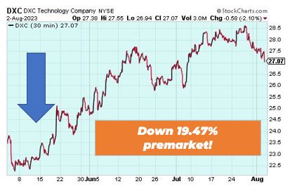 | Good morning Wake-up Watchlisters! While you're sipping coffee you'll see stock futures fell on Thursday. The markets are still recovering from Fitch's downgrade of U.S. long-term credit on Wednesday, a move that put extra pressure on investors and caused a selloff on Wall Street. Traders will be monitoring jobless claims data today to better understand the strength of the labor market. When a big news item like Fitch's downgrade derails the markets, it's crucial to know how to avoid landmine trades. Our Tacticians Bryan Bottarelli and Karim Rahemtulla have been through rough markets before, and they use several strategies to manage risk in The War Room. Click here to see the buying opportunities they've spotted after the recent Fitch downgrade. Here's a look at the top-moving stocks this morning. PayPal (Nasdaq: PYPL) PayPal is down 7.99% premarket after the payments giant said a key measure of profits shrank in the second quarter. PayPal's underwhelming margins has been worrying analysts in recent quarters, with its growth in branded products slipping due to competition from big tech companies like Apple. Wix.com (Nasdaq: WIX) Wix.com is up 11.57% premarket after the website maker outproduced in the second quarter. Revenue numbers totaled $390 million, which was a 13% increase. Also, its creative subscriptions and business solutions revenue growth accelerated for the third consecutive quarter. |
