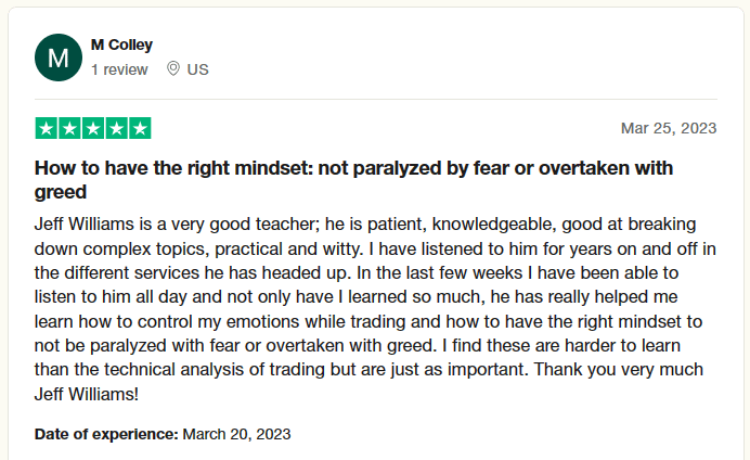 It brings me the most joy when I hear feedback like this — knowing I'm helping traders just like you increase their knowledge and confidence in the market. |