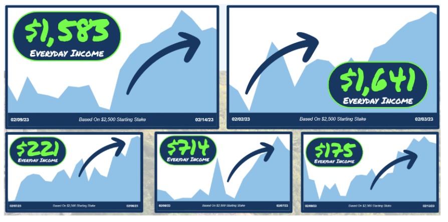 Disclosure: The profits and performance shown are not typical, we make no future earnings claims, and you may lose money. From 1/1/23 through 8/14/23 the win rate is 72.5%, based on a $2,500 starting stake the average return is $258 and the average winner is $735.