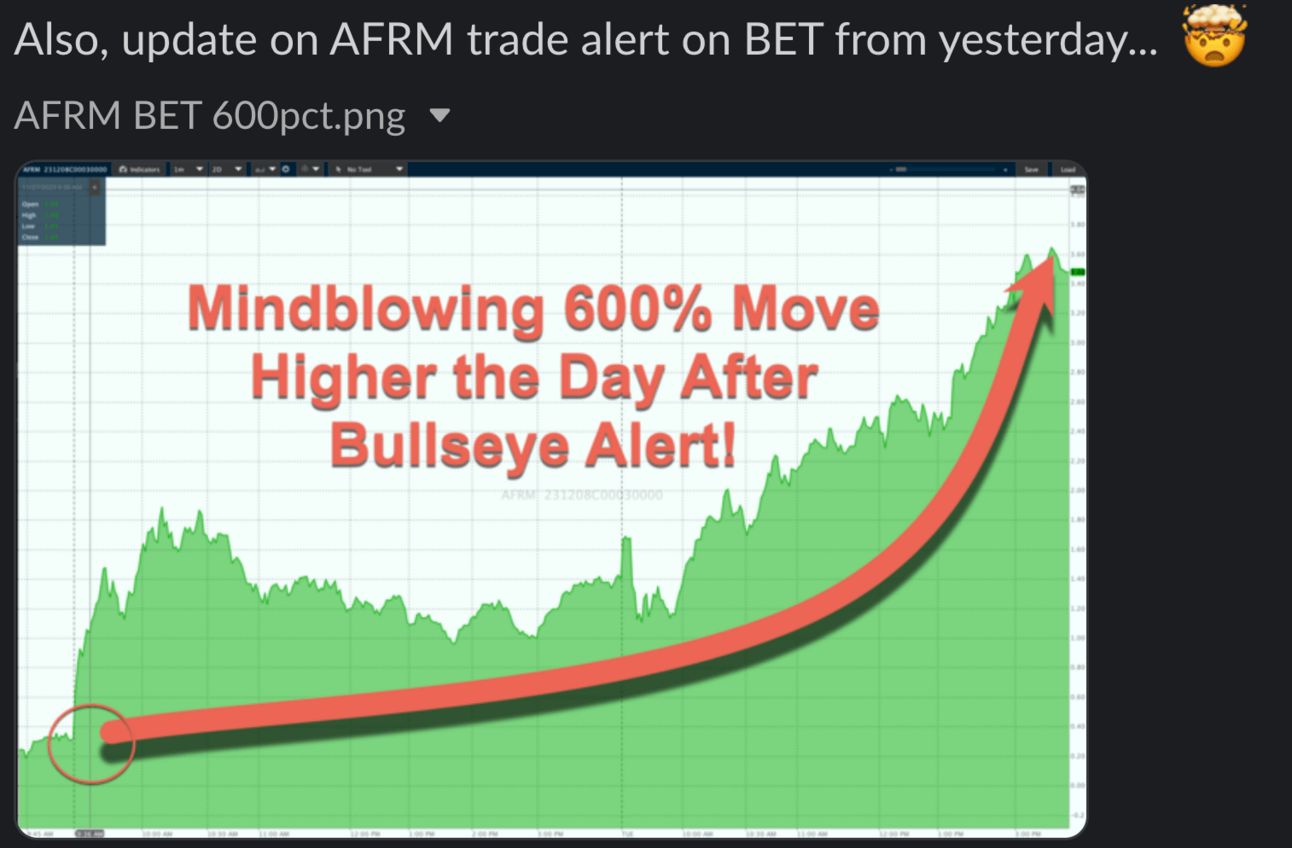 | But… AFRM was just getting warmed up on Monday. | Here's my post from Tuesday: |  | Trading is hard, results not guaranteed and should not be expected to be replicated typically. |