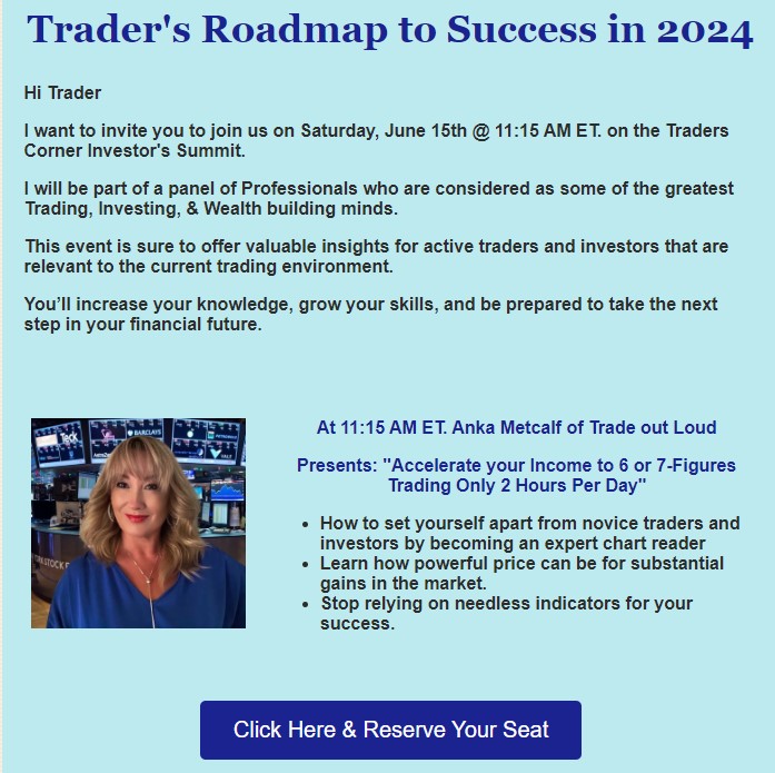 | TradeOutLoud, LLC, it's employees and/or affiliates shall under no circumstance be liable to any user, client, visitor and/or third party for any losses of any kind including but not limited to: trading losses, lost profits or other damages. All information provided by TradeOutLoud, LLC webisite, blogs, emails, social media - past, present and future) is for education purpose only. TradeOutLoud, LLC, is not a registered advisory firm. TradeOutLoud, LLC is not responsible or liable in any way for any content delivered via any of our services, emails, website, social media, blogs, articles or any publication of any kind. Although we provide rules for user conduct and postings, we do not control and are not responsible for what users post, transmit or share on the service and are not responsible for any inaccurate, offensive, inappropriate, obscene, unlawful or otherwise objectionable content you may encounter on the service. The Company is not responsible for the conduct, whether online or offline, of any user. CFTC Rule 4.1