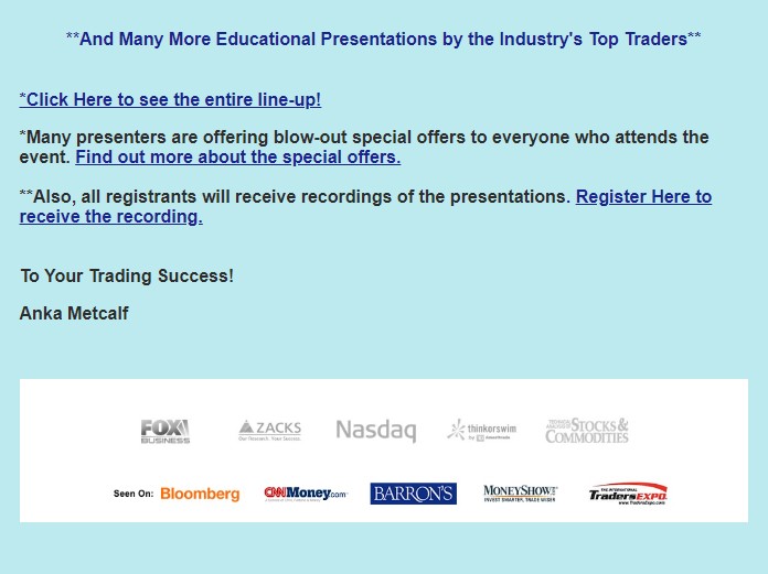 U.S. Government Required Disclaimer: Commodity Futures Trading Commission. Futures, options, stocks, etf's trading has large potential rewards, but also large potential risk. You must be aware of the risks and be willing to accept them in order to invest in the futures and options markets. Don’t trade with money you can’t afford to lose. This website is neither a solicitation nor an offer to Buy/Sell futures, stocks, etf's or options. This website is intended for education purposes only. We are not registered investment advisers and in no way associated with any FINRA broker dealer. The past performance of any trading system or methodology is not necessarily indicative of future results. Simulated Trading