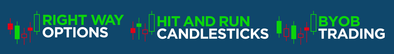 You should use all information as a starting point for developing your trading techniques. Hit and Run Candlesticks Inc., Trading for Profit, LLC, Right Way Options, and BYOB Trading do not recommend or endorse specific buy-and-sell instructions. The reader must accept personal responsibility for all trade decisions. The Hit and Run Candlesticks, Right Way Options, and BYOB Trading website content and product offerings are not intended to provide investment, tax, or legal advice. Neither Rick Saddler, Doug Campbell, John Carignan, Hitandruncandlesticks.com, Right Way Options, nor BYOB Trading will be responsible for your personal trading results.