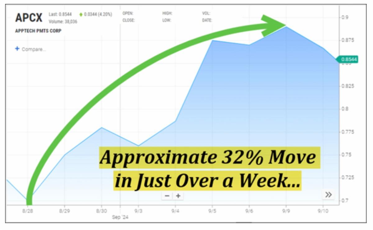 2. Recent Market Recognition: Shares of AppTech Payments Corp. (NASDAQ: APCX) recently saw an approximate 32% move from $.68 to $.90 in just over a week, indicating strong market interest.