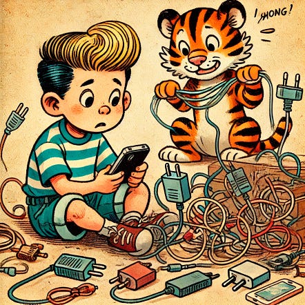 Dear Fellow Traveler: Welcome to new readers who have been gracious enough to join our little paper boat after my recent appearance on Josh Brown. On Fridays, I tend to do a more reflective piece that will preview expectations for the weeks ahead, pulls from the randomness of finance, and gives us a few discussion points for future commentary. This morning, I was rushing to get The Capital Wave Report out… and found myself “not ranting” about the now THREE drawers in my house that are dedicated to cell phone and computer chargers that I don’t need anymore. However, somehow the end of my little story ended without the punchline. I had noted that Europe has seen enough companies constantly creating new extension wires to capitalize upon. In late 2024, the EU required all small electronic devices… including phones, tablets, and cameras… to use USB-C. The logic was simple. They wanted to stop turning e-waste into a business model. It’s a partial reversal of the Broken Window Fallacy. Here, tech companies break the window by changing ports, then profit by selling you the glass. Meanwhile, in the U.S.? Are we going to mandate this? Absolutely not. We’re Americans. We use gallons, pounds, Fahrenheit… and 19 different iPhone bricks. (SNL link). We don't want standardization… We want variety with a markup. We're one of only three countries on Earth that hasn’t adopted the metric system. AMERICA! So get ready: the iPhone 20’s charger will be nostril-shaped and cost $73 at the airport when you leave the last one behind… All to create jobs in China and Vietnam… Thing I Think No. 2: I Got a Medill F YesterdayWhile in college, my journalism program had something called The Medill F. You would get an F on any journalism assignment if you made a grammatical, factual, or citational mistake. It happened to me one time… where I used the wrong homonym in an article… Well, it happened in yesterday’s column. Now, I don’t do this often… but when I make a stupid mistake (I’m not talking homonyms or misspellings), but something so glaring and boneheaded… I have to pay a tax. That tax is giving the reader that spot it… one month free to me and the Money Printer… even if they are a paid subscriber already. What was the mistake? I said in the Subhead in the body of the article that SEVEN powerful words in the global economy are hiding in plain sight on every dollar bill.