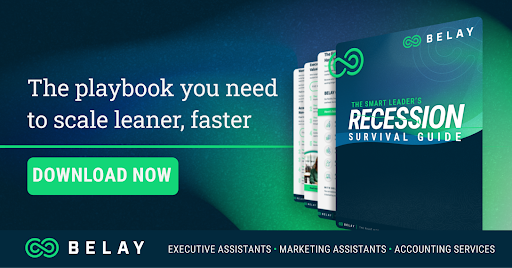 Budgets are shrinking. Teams are getting leaner. And the pressure to do more with less has never been greater. Layoffs. Cost cuts. Uncertainty. You're feeling it — and so is your business. But surviving a downturn isn't about cutting corners. It's about working smarter. With flexible, scalable support, you can maintain momentum and protect your budget — without committing to full-time hires. That's where BELAY comes in. Our U.S.-based Executive Assistants, Accounting Professionals, and Marketing Assistants deliver the expertise you need — scaled exactly to fit your needs, your budget, and your future. Because the truth is, when you're stuck organizing your inbox or filing receipts, you're losing more than time. You're losing focus, energy, and strategic clarity. And in a downturn, those aren't luxuries; they're survival skills. The more you're pulled into the weeds, the less you're able to lead your business where it needs to go. Let BELAY help you do what matters most: lead boldly through uncertainty. Stay lean. Stay focused. Stay ahead with BELAY. Download The Smart Leader's Recession Survival Guide and learn how to protect your business — and your time — with BELAY. |