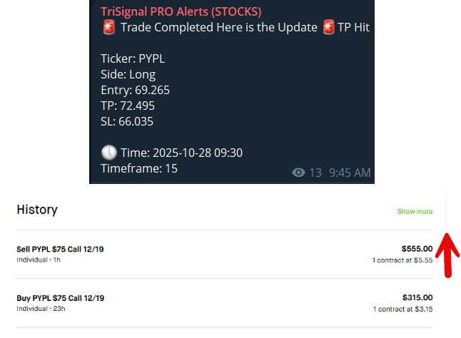 | | Hey folks! I just kicked off the week with another nice winner! 76% on PYPL and still holding SOFI for 20% right now....