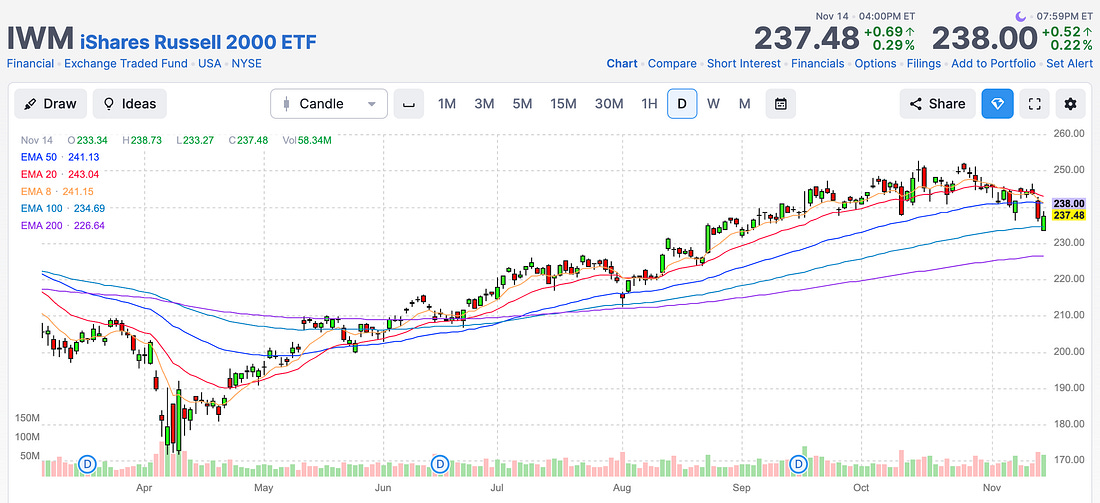 You are a free subscriber to Me and the Money Printer. To upgrade to paid and receive the daily Capital Wave Report - which features our Red-Green market signals, subscribe here. Postcards from the Edge of the World...It's a quiet Sunday that will take me many places... Here are some reflections... The Week in Review... and the Week Ahead...Dear Fellow Traveler: For those who don’t know… this publication began as something called Postcards from the Florida Republic. I was living on the outskirts of the barrier islands in Southwestern Florida, far away from my editorial team in Maryland. I’d spend hours on air… but none of the marketers were watching… always asking what Garrett was saying about the markets… So… I started writing this on the weekends… it was 15 pages of charts and other ideas. When I sent it to the marketers… they still never read it. Frustrated again, I started to send it to publishers each week. It caught attention… After time, I was recruited to Baltimore to launch this concept with a company… After 18 months, we never got the resources to do it… So here we are again… but growing. I had to sell my farm to move here… it was called The Florida Republic. Well, here we are today… in the middle of Central Maryland… It’s windy. But backed onto two acres of liveable land, supported by ample forest and water. I have called this farm “The Edge of the World.” Postcards from the Florida Republic gave way to Me and the Money Printer - after a well-timed report we wrote called The Hedge of Tomorrow in March 2024, when we recommended gold at $2,100, silver at $25, and Bitcoin at $62,000. The realization was that markets were not operating on fundamentals, but instead on a constant source of refinancing and a never-ending commitment by politicians and policymakers to sacrifice the productive parts of our economy to rent-seekers and leveraged funds. Our equity focus here centers on liquidity, momentum, and insider buying, combined with how that feeds into the optimal long-term stocks to own… In fact, the Capital Wave Report (the paid subscription that goes with Me and the Money Printer) will dive into all of the metrics this week that will help you identify the best stocks supported by this market’s ecosystem. I will conclude this week with a list of names that become long-term, must-own stocks. But Postcards from the Florida Republic has always been a part of my personality… I had to change the name because I no longer lived in Florida. But more importantly, I didn’t have a “home.” I didn’t have a place where my identity aligned with the soil. I didn’t want to perform. Faking an identity impacts your integrity… and when both are negatively affected by pretending to be something that isn’t real… it has no impact. It doesn’t deserve your attention if I’m still writing Postcards from the Florida Republic, but I’m not writing and reflecting from under that same coconut tree… Do you understand? That’s just performance… It would just be an act… So… here we are now…in the shade of the timberline. So, I’ve found “The Edge of the World” farm… A place where lawn meets forest… where light fights shadow… where open ground leads to mysterious drop-off… In the next few weeks, I’ll be re-launching Postcards from the Edge of the World every week… It will operate at my Personal Substack… and it will return to its roots - long weekly analysis that contains plenty of charts, opinions, and more… It will also be a good time to revisit old friends… and showcase the evolution of our thinking… There are snapshots and postcards from times that require revisiting… And old friends… Look for the first one to arrive in December… after Thanksgiving with Tim Melvin… You can sign up for free… right here… We will then begin discussing that site as the necessary support system for our growing fascination and focus on optimal investments in the extraction game. And as always, if anyone is interested in syndicating or partnering, please reach out… Chart of the WeekThe Russell 2000 has been negative according to our Momentum Reading since late October. But Friday, we saw a rebound that got a lot of people excited… Well, it turns out that the Russell 2000 bounced off its 100-day moving average, setting up some technical support. The question now is whether we have reached the worst of this short panic or whether we’re setting ourselves up for more challenges due to liquidity strain. Michael Howell suggests Monday is setting up to be a very important day… What’s Happening Right Now?We’ll keep this simple… Since July, I’ve talked about the Repo markets and concerns about the state of liquidity and reserves in the system to the point of exhaustion. The ongoing selling at Softbank in Japan… the weakness in banking reserves… the Fed’s overnight Standing Repo Facility activity… and much more. Look - this stuff is intentionally vague… The average American has no idea what I’m talking about. Half the copywriters and publishers I speak with look at me like I’m talking about nuclear physics. The reality is simple. It’s intentionally vague so that people don’t ask a ton of questions. They want their homes and their cheap mortgages and their auto loan… but they don’t want to know how people keep their hands on the scales to ensure that all of that U.S. debt gets bought and suppressed to prevent a blowout… I’m not defending Wall Street. I’m just reminding you that without all the financial engineering in the post-2008 world, things can get really fair, really fast… Well, now we know that the Fed is doing what it can to maintain stability… Last week, they had an unannounced meeting with banks in New York City to encourage them to keep borrowing from the Fed. Just get access as you need it… The alarms are going off… and Bitcoin’s continued decline underscores real stres
