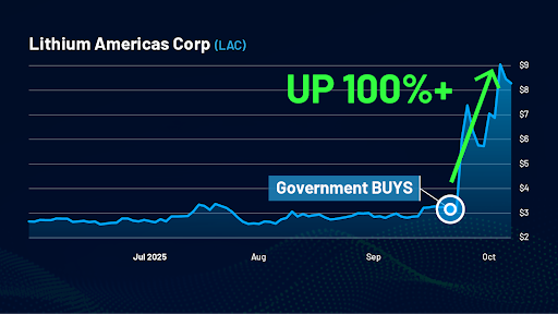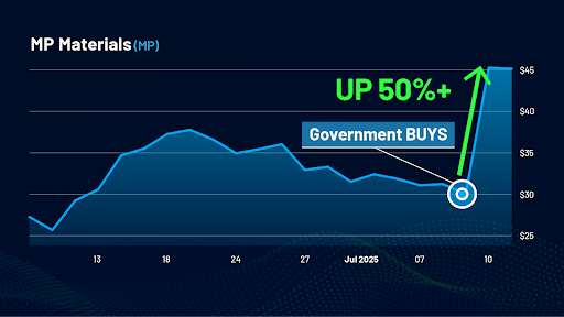 In fact, I want to give you the names and tickers of dozens of stocks political insiders are likely to target next, using the very same information that helped me get my followers into MP Materials before it exploded 100% higher.
