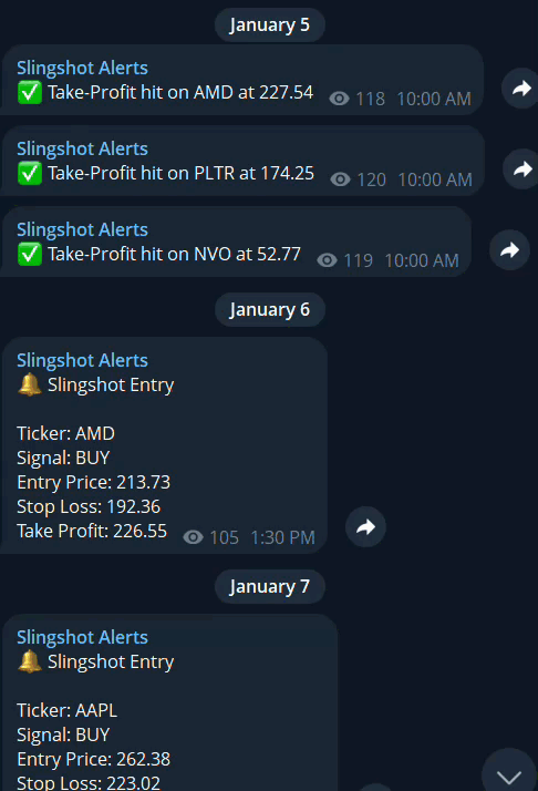 Traders! Boy on boy do I have something CRAZY to share with you. Since January 5th the SLINGSHOT system has been DIALED in... RESULTS ✅AMD ✅NVO x2 ✅COST ✅AAPL ✅SPY ✅PLTR ❌ HOOD | So for the next 2 days here is what I want to do. I'll give you a $300 discount! I dont want anything stopping you from gettin in here 💪 | |