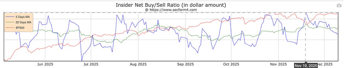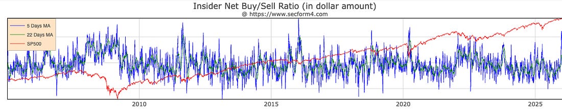 You are a free subscriber to Me and the Money Printer. To upgrade to paid and receive the daily Capital Wave Report - which features our Red-Green market signals, subscribe here. Dear Fellow Traveler, Picture every Fox Business panel you’ve ever watched. The host asks, “Where do you see the best opportunities today?” The participants all give the dumb look of a substitute teacher who just found out today’s class is AP Calculus. One person says “valuation” like he’s reciting a safe word… Another says “earnings visibility” the way you’d say “Pretty sure this is poison.” The third guy shoves “AI” into his answer because he knows his boss watches. [All three happened with an analyst in minutes on CNBC this morning, by the way…] In this example, we have multiple people in expensive suits playing hot potato with a question nobody wants to catch. It’s why I don’t watch or listen to them. Instead, I pay attention to the one group that never… ever… gets to waffle, hedge, or fill airtime. Corporate Insiders. We’re talking about the CEOs, CFOs, and board members who run companies. They don’t watch from the outside. They have desks… with nameplates…and get their birthdays off (though none of them actually take the day off). Executives can’t hide behind stories or charts. They can’t blame “macro headwinds” or “the consumer” when things go wrong (unless they’re Oxford Industries). Executives either buy their own stock or go back to pretending the price-to-earnings ratio matters. That single action (buying or not buying) tells you more about what’s really happening than 80% of the “analysis” you hear on television. Before we get into the weeds, let’s put a clean definition on the table so we’re talking about the same thing. Let’s Define ThisNow… I’m not talking about “insider trading” in the illegal, go-to-jail sense. I’m talking about insider buying that is the legal, publicly-reported kind, where executives buy stock in their companies and must report it to everyone. When executives buy their own stock, they’re putting their money on the line (hard cash with direct purchases). They’re not on air making analogies or excuses. They’re not pointing to a chart and saying, “The trend is your friend.” When they buy, they use Form 4 documents that you can track on SEC EDGAR if you have the time (we do over at the Insider Buying Report… sign up for free) Insider buying is a critical piece of the Waterfall framework we discussed on Tuesday. So it goes… Liquidity. Momentum. Insider Behavior (And Policy). Insiders buy for one main reason… they believe conditions are about to get better. And when conditions get better, money flows more freely. And when money flows more freely, stocks go up. This isn’t rocket surgery… What Insider Buying MeasuresMost journalists will write that insider buying feels like a “vote of confidence” in their company. That’s half true… and irrelevant at the macro level. Insider buying really measures timing. Executives live closer to the action than everyone else, so they experience the economic changes before regular investors do. CEOs feel tightening credit before the rest of us. The CFO feels it even faster because he’s the one refreshing the company’s bank dashboard. And board members? They show up when they smell opportunity and vanish when they smell smoke. These aren’t people waiting on government reports or economists to predict 15 recessions in a row or claim that we’ve beaten inflation... They feel the change coming, and they vote with their money... That’s why insider buying isn’t really just a stock signal. It’s a system signal. At the aggregate level, it can tell you when the machine is about to turn on again. And the research proves it. No Fairy DustInsider buying is one of the most heavily studied phenomena in finance. Professors have been picking it apart for decades… and I had the chance to study with one of the best in the bunch: Ken Carow at Indiana University. Now, a lot of data shows that insider buying leads to greater alpha. It will tell you about different ways to focus on individual stocks, what executives to follow, and everything else that’s been studied at the microeconomic level. I love that stuff… and it works. But in the Waterfall Strategy… I want to show you why it is so important at the macro level when we combine it through the lens of liquidity and equity momentum. Let’s just cover a few academic parts first… 1. Insider Buying Predicts Where the Market Is Going A researcher named H. Nejat Seyhun published a landmark study in 1992. He found that if you add up all the insider buying and selling across the entire stock market, it predicts about 60% of what the market will do over the next 12 months. Again, that’s 60%, not at the individual stock level, but at the entire market level… That’s exactly why we follow insider buying-to-selling at the aggregate level… Yes, it matters, especially at the aggregate level. 2. Insiders Trade More When Big Changes Are Coming Xiao Li examined insider trading across 22 countries in 2020. He found that insiders trade more actively when there’s uncertainty about government policy, whether it’s rising or falling. Did you hear that? When government policy is about to shift… the insiders like to move quickly… Doesn’t matter if it’s QE, new bank lending, new Treasury issuance, interest rates going up or down, or trade policy shifts. It’s all one and the same. POLICY changes (The subject of Money Printer 104 tomorrow). Again… this is why we’re focused on the aggregate… more on that in a moment… 3. The Big Bosses Move First B. Lambe published a study in 2022 showing that CEOs and CFOs act faster than other insiders when conditions are shifting. They smell the change in the air before anyone else notices the breeze. Again, we put the focus right on the top two execu