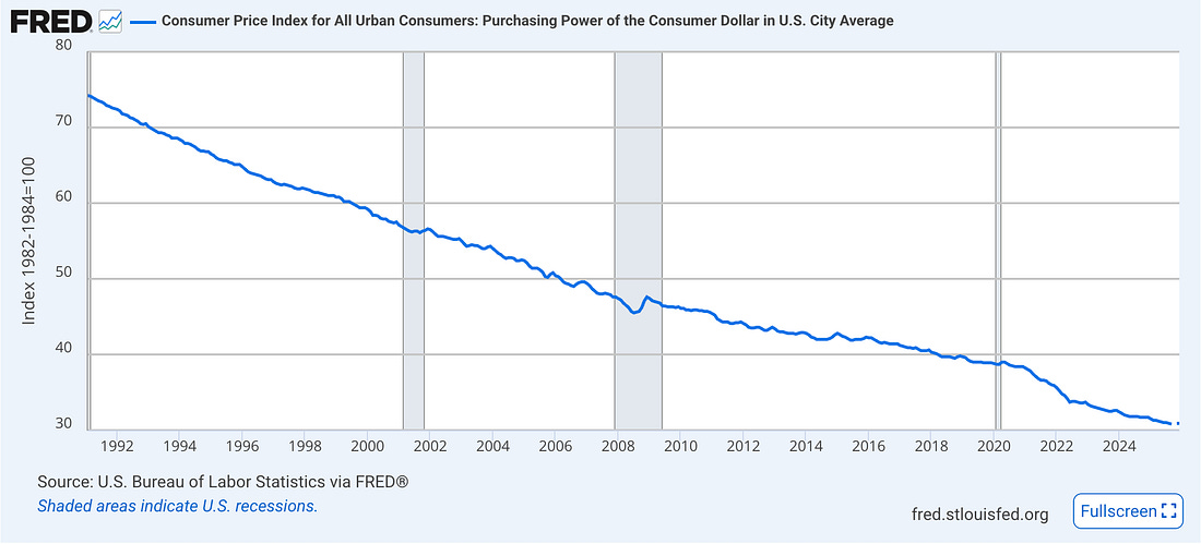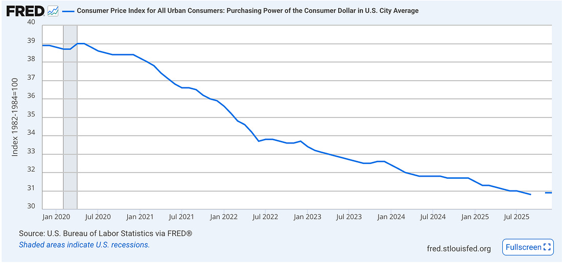 Postcards from the Edge of the World (Vol. 10)The One Thing They Take More than Anything Is The Only Thing That Matters.To Whom It May Concern (YOU!): We’ve reached the critical volume of Postcards from the Edge of the World. This is Volume 10. This is the most important discussion about policies and outcomes in the modern financial and social system. That’s because what’s really extracted doesn’t top the list of daily American concerns. Largely, because we don’t really talk about how the system works. Moving forward, you’ll never unsee the impact or details. And, as always, I ask you to keep an open mind. A Homework Assignment and Measure of Your MoneyThis weekend, I ask you to do a few simple calculations. It’ll be very difficult to tally everything, and the outcomes may make you uncomfortable. Calculate your federal, state, payroll, property, and, finally… the sales (excise fees and usage) taxes from everything you bought. Start there. I know. It’s a lot. Every dollar, nickel, and dime you can find on statements, tax bills, receipts, and so on over the year 2025. Subtract that figure from your annual income. That will give you a net income figure. Divide that net income by gross income. That percentage represents how much of your working year you really keep. Don’t think about it as money. Think of it as hours. The percentage of hours of your working year you actually kept. The rest of those hours (percentage-wise) were transferred before you ever had control of them. There’s no debate about this. It’s just math. The financial system doesn’t care how you feel about this surprising calculation. You’ll find FAR more is collected than the advertised rates we calculate each spring tax season. We’ve been trained to think of taxes in terms of percentages of income earned once a year on only on two major sources. Those basic metrics are income tax brackets. You might pay 20% federal and 5% state, and the government will calculate an “effective rate” based on deductions. That’s an easy framing for tax collectors. Percentages can feel abstract and exist in spreadsheets or legislation that few people read. These percentages obscure the real costs, and we rarely “count” all the sales, excise, and other fees that nickel-and-dime our income. Those just feel like inconveniences. Unless we really reframe this. Taxes and fees are not percentages of wages or investments. They are, when tallied, hours of your time. They are an extraction of time and energy, not necessarily the trade-offs of consumerism, as Henry David Thoreau realized in Walden (the quote above). If your combined “tax and fees” burden across all methods is 40% (and it is easy to reach that level if you run your own business), then 20 out of every 50 hours are transferred. That’s basic arithmetic. It also means that two of the last five years of work were transferred to another location. We start measuring YEARS in life when we look at the long run. This will not be a rant about taxation. It’s simply an observation of mathematics and its impact on finite time. You traded finite hours for wages, and a portion got redirected before you could decide what to do with it. By definition, this is an extraction of your present time (less than 12 months). It’s visible and documented. But present-time extraction is only one layer of the financial system. Two more forms of time extraction operate with less visibility. The Ways They TakeLet’s talk about your savings account. Many people have disciplined savings behaviors and might be nervous about deploying it to a stock market that has surged and crashed repeatedly since 2008. Sure, we’re back near all-time highs, but only 62% of Americans invest. Many might just live off fixed-income payments. They may be older and more risk-averse. Or they’ve thrown in the towel and don’t trust the equity market. They might have also delayed consumption, resisted the temptation to spend, and set money aside for the future. These savings are not just dollars. They are stored labor and crystallized time. The hours you might have worked in 2015 or 2018, or whenever you earned that money, are preserved in a simple figure… at a specific rate. Now, let’s discuss what happens when we see the purchasing power of that stored time erode over time due to fiscal and monetary policies. Economists have a specific term for this. It’s called the “inflation tax.” This is a nice way to say that we’re seeing the purchasing power fall for someone who thought they were doing the right thing by saving for another day. The U.S. dollar’s purchasing power has steadily declined for decades. Now, this is a static analysis. Let’s talk about the guy with the rainy day fund who tosses cash into a basement safe. If you saved $10,000 in 2020, and inflation eroded that purchasing power by more than 20% (which is the official reading of CPI), then you’ve lost a sizeable stake of your stored labor (unless you spent it or found a way to generate a return over 20% during that period). Not everyone has done this. We are only focused on the “real value” of the underlying money. Remove the expectation or argument that a person needs to keep up with inflation (which isn’t guaranteed, given the 2022 stock market performance). People understand nominal value declines. If they invested $10,000 in the stock market at the start of 2022, and the market fell 20%, they would have $8,000 on paper. That’s a nominal decline. But a real decline - fueled by purchasing power - feels different to people. The real purchasing power loss of $2,000 due to inflation is not shown on paper. That initial value of $10,000 was from work previously performed and consumption previously postponed. It’s still $10,000… reads $10,000. But that real value decline compounds, just not on a dollar holder’s behalf. Inflation isn’t really about raising prices. It’s a redistribution of time from sa