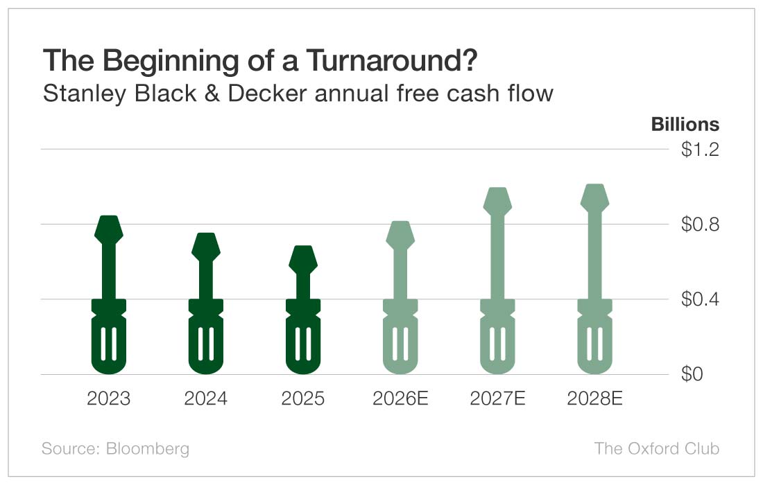 | The markets have been volatile lately as war rages in the Middle East and oil prices remain elevated (even surging past $100 earlier this week). Mag 7 and software stocks have gotten pounded. It's enough to make some investors nostalgic for just owning quality companies that pay dividends every year. Surely you know Stanley Black & Decker (NYSE: SWK). You probably own some of its tools. Your father and grandfather probably did as well - and maybe even several generations further back. The company has been around since 1843. The stock sports an attractive 4.5% yield, and the company has an impressive 58-year track record of raising its dividend. It is a member of the prestigious Dividend Aristocrats. With everything going on in the world, can this nearly 200-year-old company keep up with the times and ensure its dividends are as reliable as its tools? First, the bad news: Free cash flow slipped last year. Safety Net penalizes a company for lower cash flow (both actual and expected) over one- and three-year periods. In 2025, free cash flow dropped from $753 million to $688 million. This year, free cash flow is forecast to grow to $817 million, but that would still be below 2023's total of $853 million. Free cash flow is expected to continue to grow in 2027 and 2028. The good news is that despite the lower figure last year, free cash flow still covered the dividend. Stanley Black & Decker paid shareholders $501 million in dividends in 2025, which was 73% of its free cash flow. Anything below 75% is within my comfort zone. This year, the payout ratio is projected to fall to 62%, which gives dividend investors even more of a cushion. |